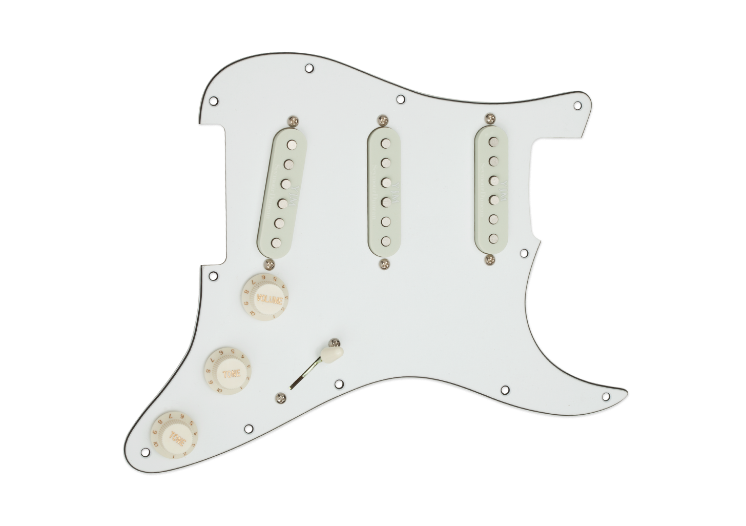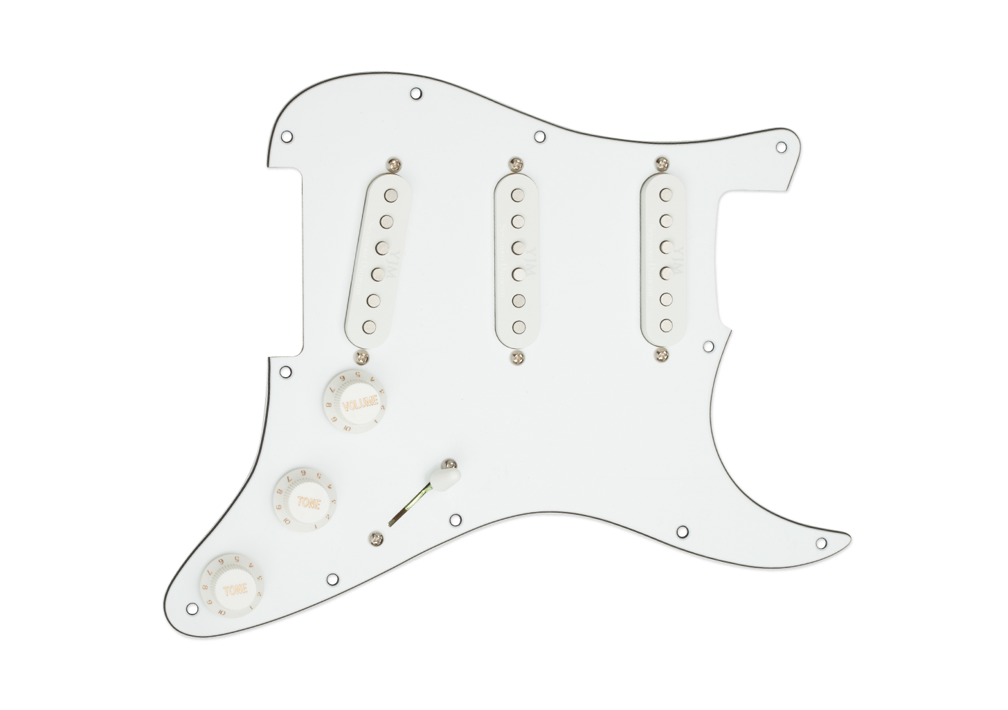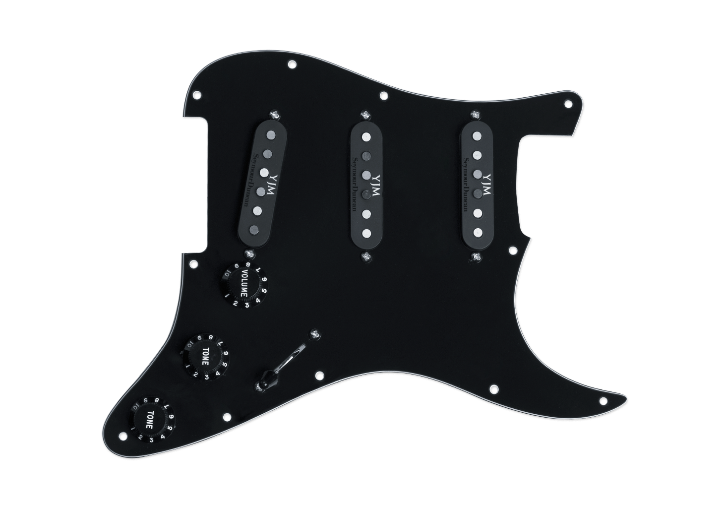 Fully loaded pickguard assembly designed in collaboration with Yngwie Malmsteen. Drop-in upgrade for compatible Strat-style guitars featuring hand-built signature pickups calibrated for speed, clarity, and high performance. Includes the high-speed YJM volume potentiometer as specified by Yngwie for instantaneous responsiveness.