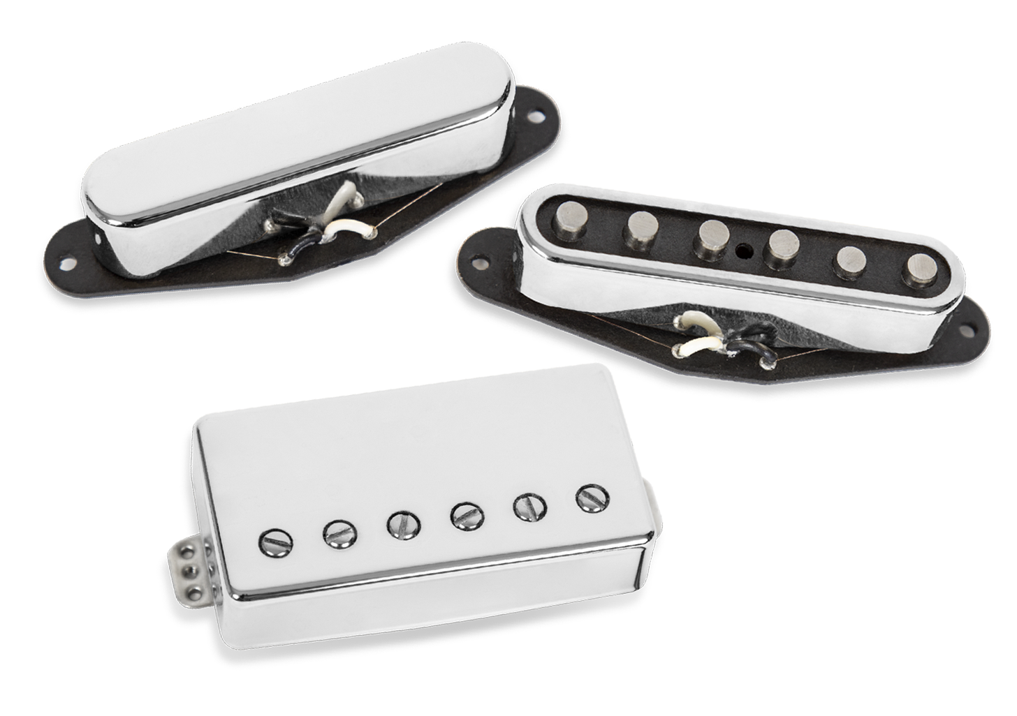 Signature 3-piece pickup set designed with Brazilian guitarist Lari Basilio. Combines a Tele-style single-coil neck with a Strat/Tele-voiced middle single and a full-output humbucker bridge to cover clean rhythm, shimmering mids and high-gain lead tones—all in one set. Chrome covers give it a sleek aesthetic.