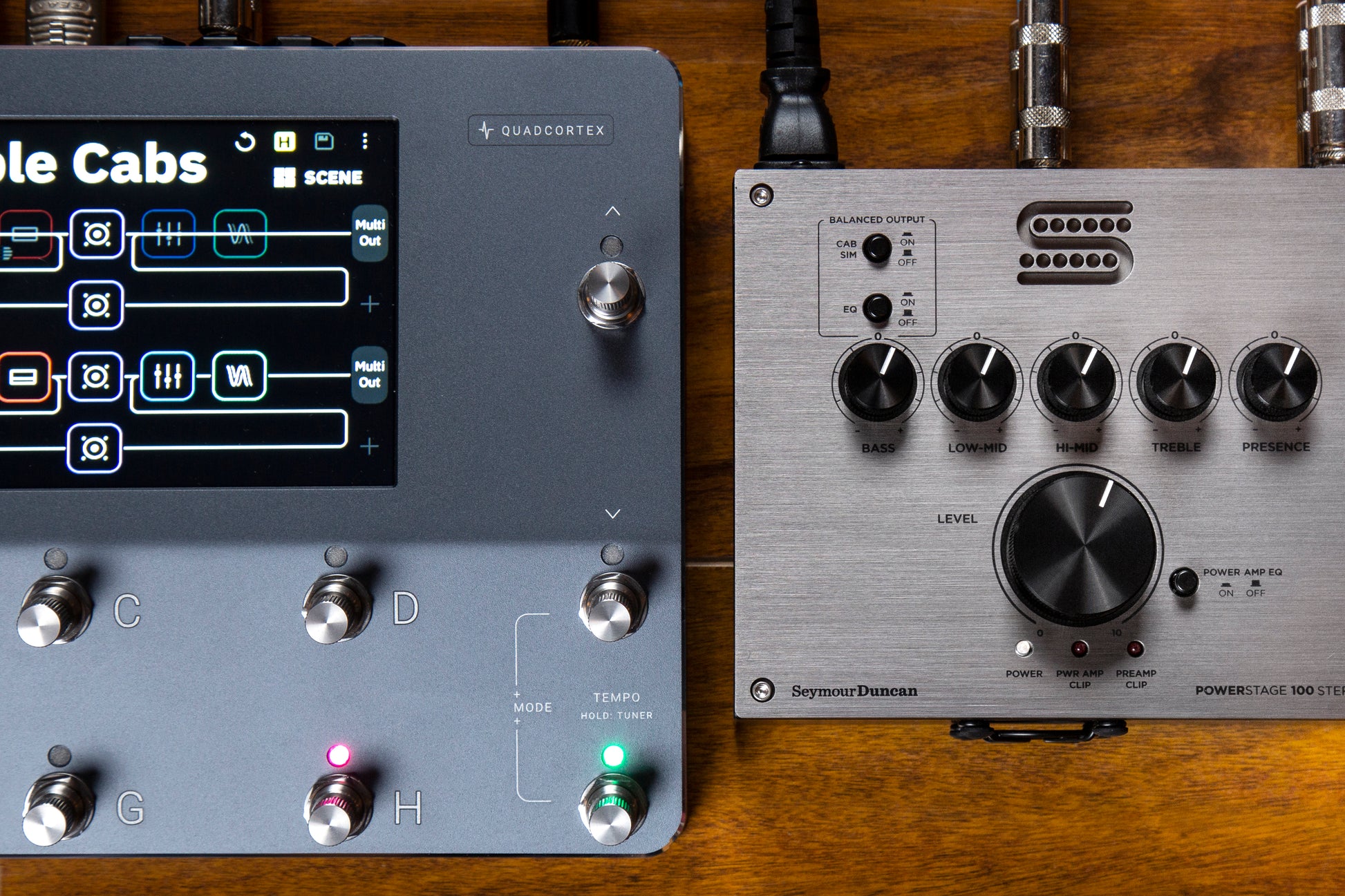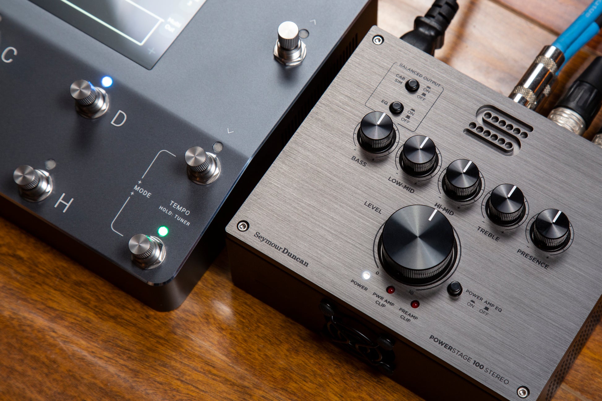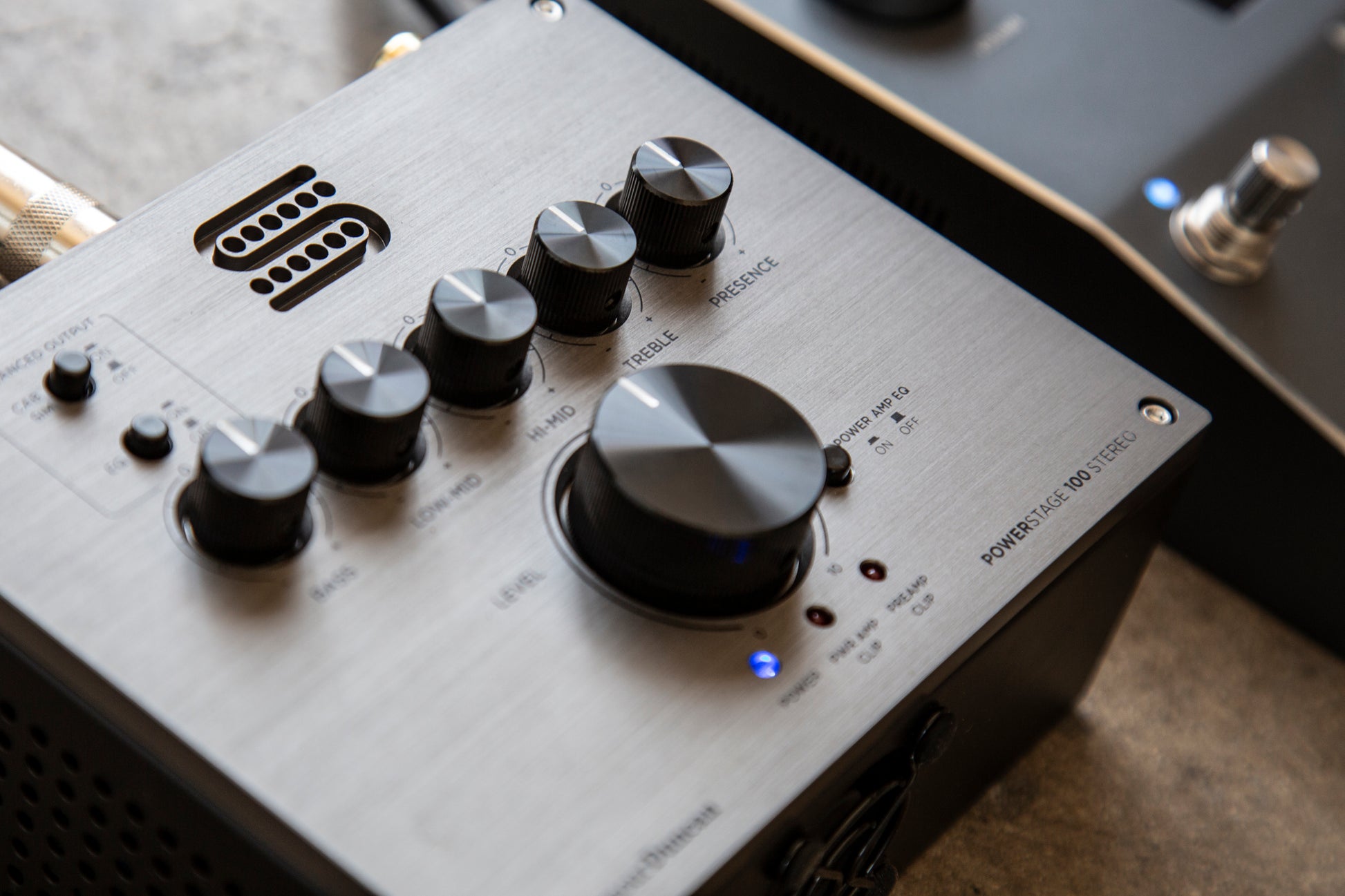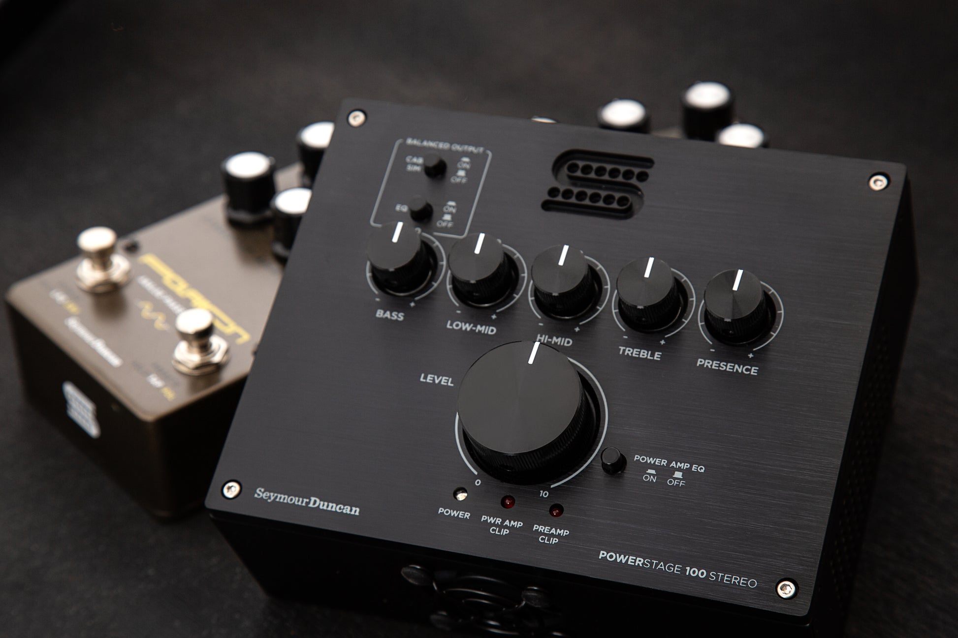 The PowerStage line of compact power amps provides high-headroom class-D amplification to guitarists looking to deliver the sound of their preamp, pedal chain, or amp modeler to the masses. The PowerStage 100 Stereo provides features demanded by the modern guitarist, including stereo inputs and outputs that each drive 100 watts of transparent sound to your cabinets. Perfect for amplifying the sound of modern modeling units to on-stage cabinets, the PS100S also offers an extended EQ section and balanced line outs with switchable analog cabinet simulation for more authentic projection through any sound system. The stereo sounds developed in your amp modeler, multi effects-unit, or preamp will be delivered with clarity through any pair of speakers, all in a package small enough to fit on your pedalboard.